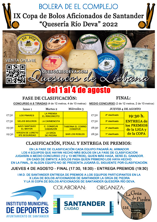Toda la competición de la IX Copa se disputará en la bolera EL COMPLEJO en Santander. Días 1 al 3 de agosto. La FASE DE CLASIFICACIÓN será en modalidad de CONCURSO 8 TIRADAS (4 tiradas de 12 metros a raya alta y 4 tiradas de 13 metros a raya al medio), con posibilidad de cambios entre cada tirada. Los cuatro equipos que más bolos hagan pasarán a la fase final, el equipo que primero haga los bolos será el que pase en caso de empate.